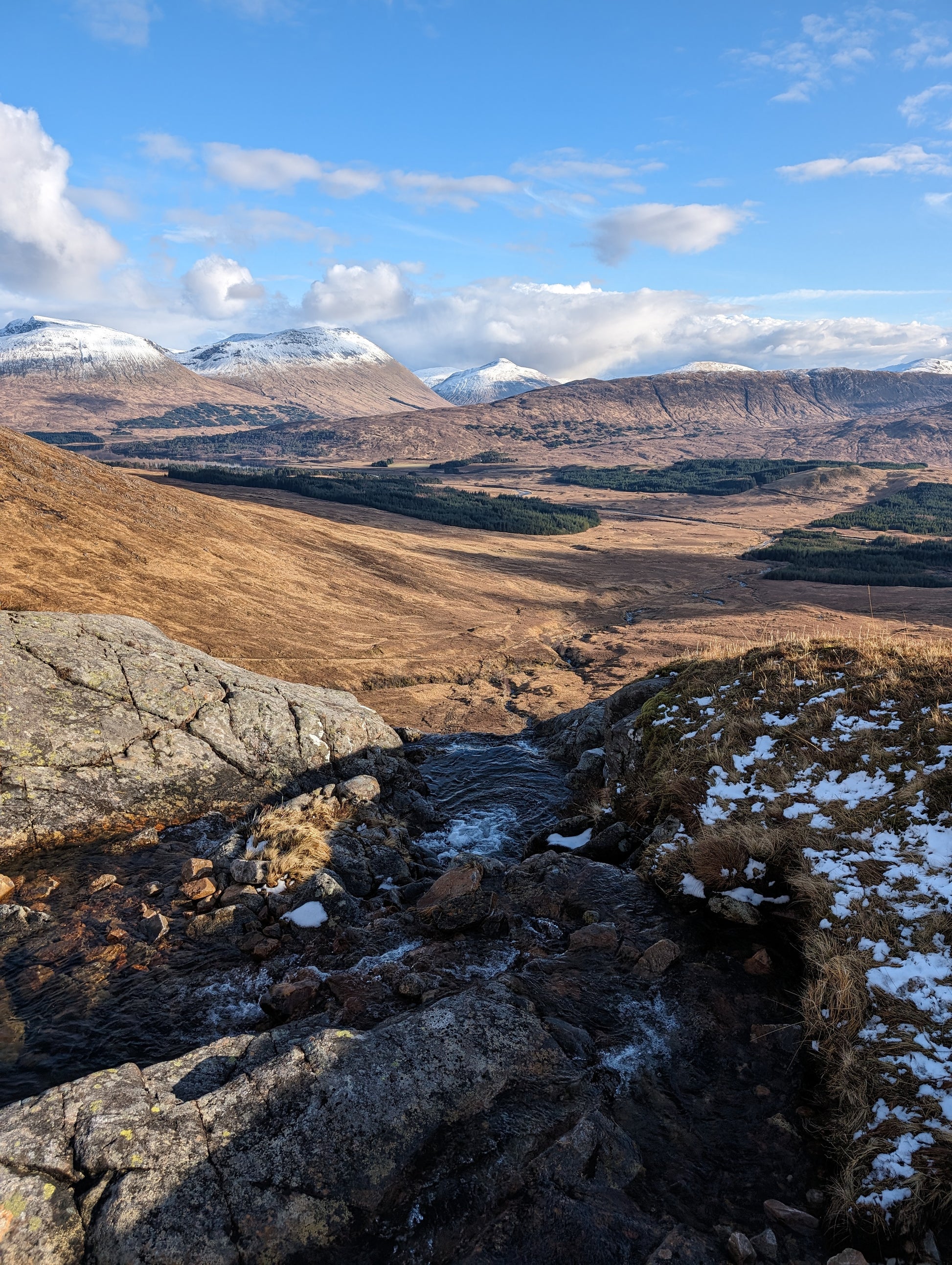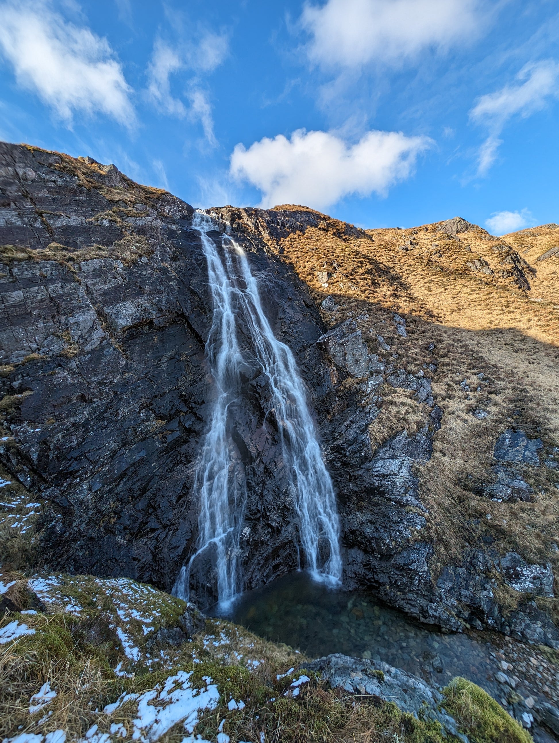 Seated upon the ridge of one of Scotland’s more spectacular Munro’s and overlooking one of its most picturesque glens. This chain of waterfalls offers a seemingly never ending collection of plunge and infinity pools all offering the most breathtaking views of the surrounding area.