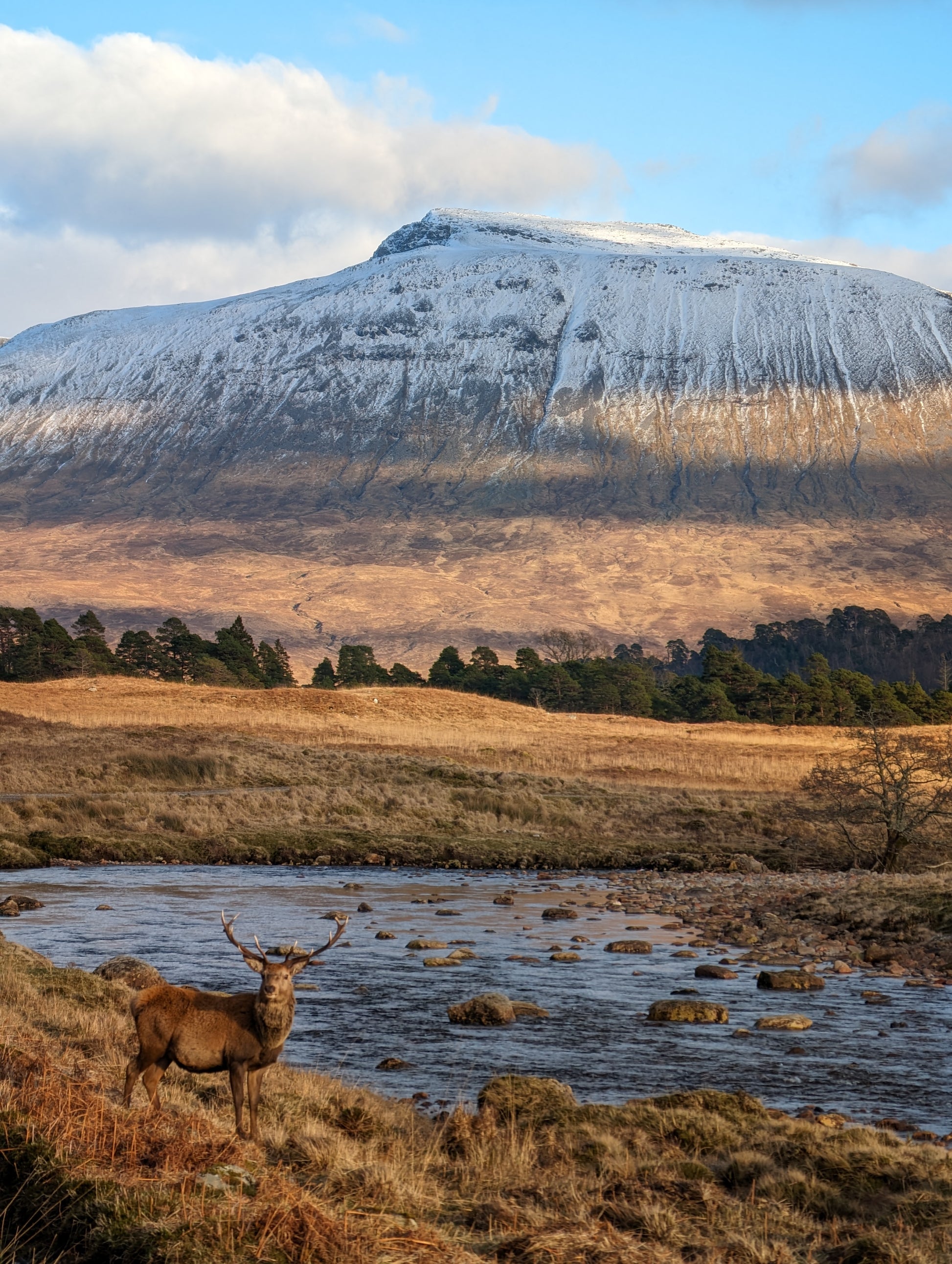 Tucked away about 30 minutes off of one of the busiest roads in Scotland this remote retreat offers a great opportunity for anyone looking to escape the traffic and crowds that flood the surrounding glens in summer. The walk in, although long, offers its own delights with the local deer being well used to humans and almost unbothered by your approach. You will often find yourself waiting for a stag to clear the path in his own time in order for you to continue your journey.