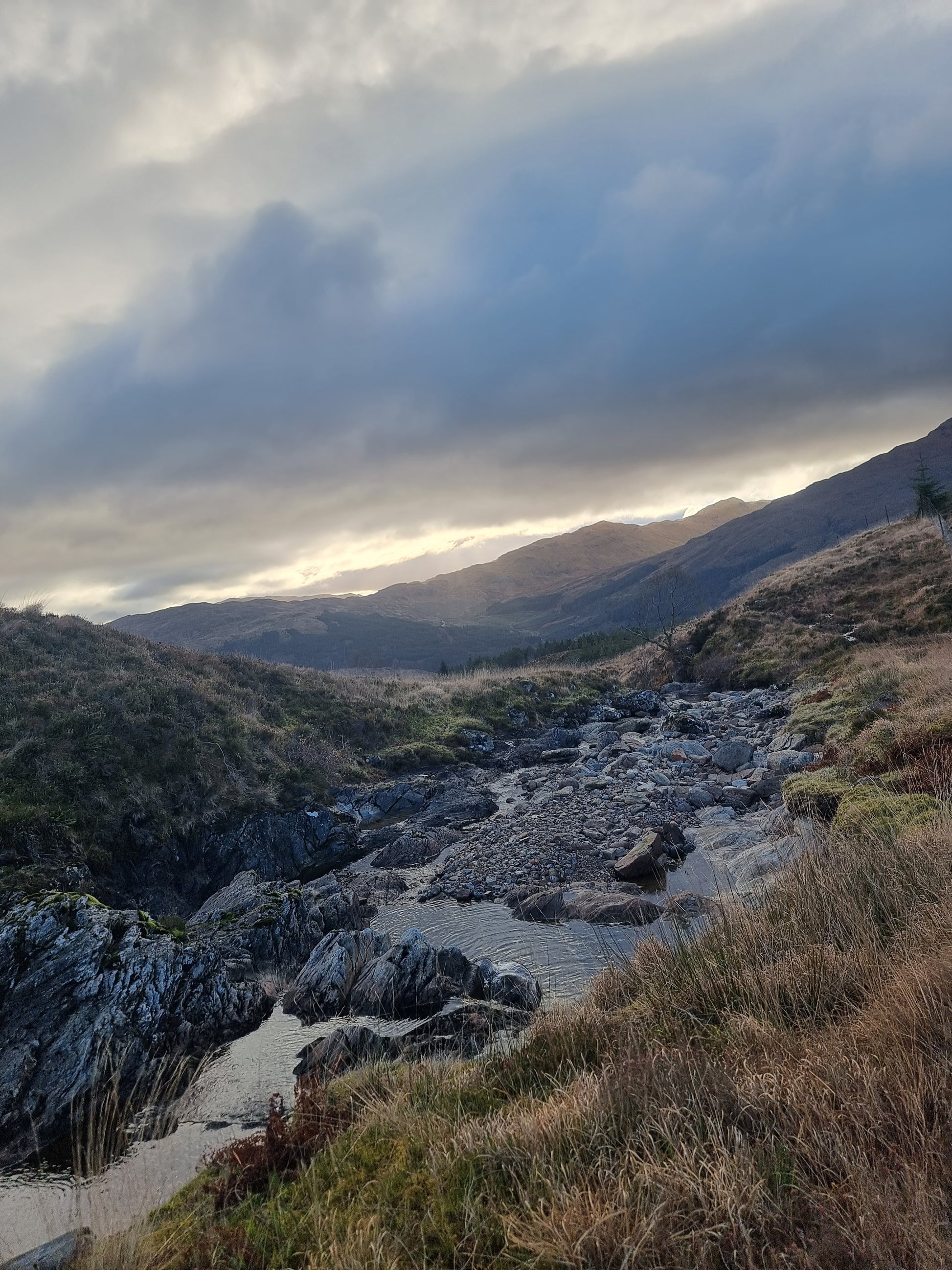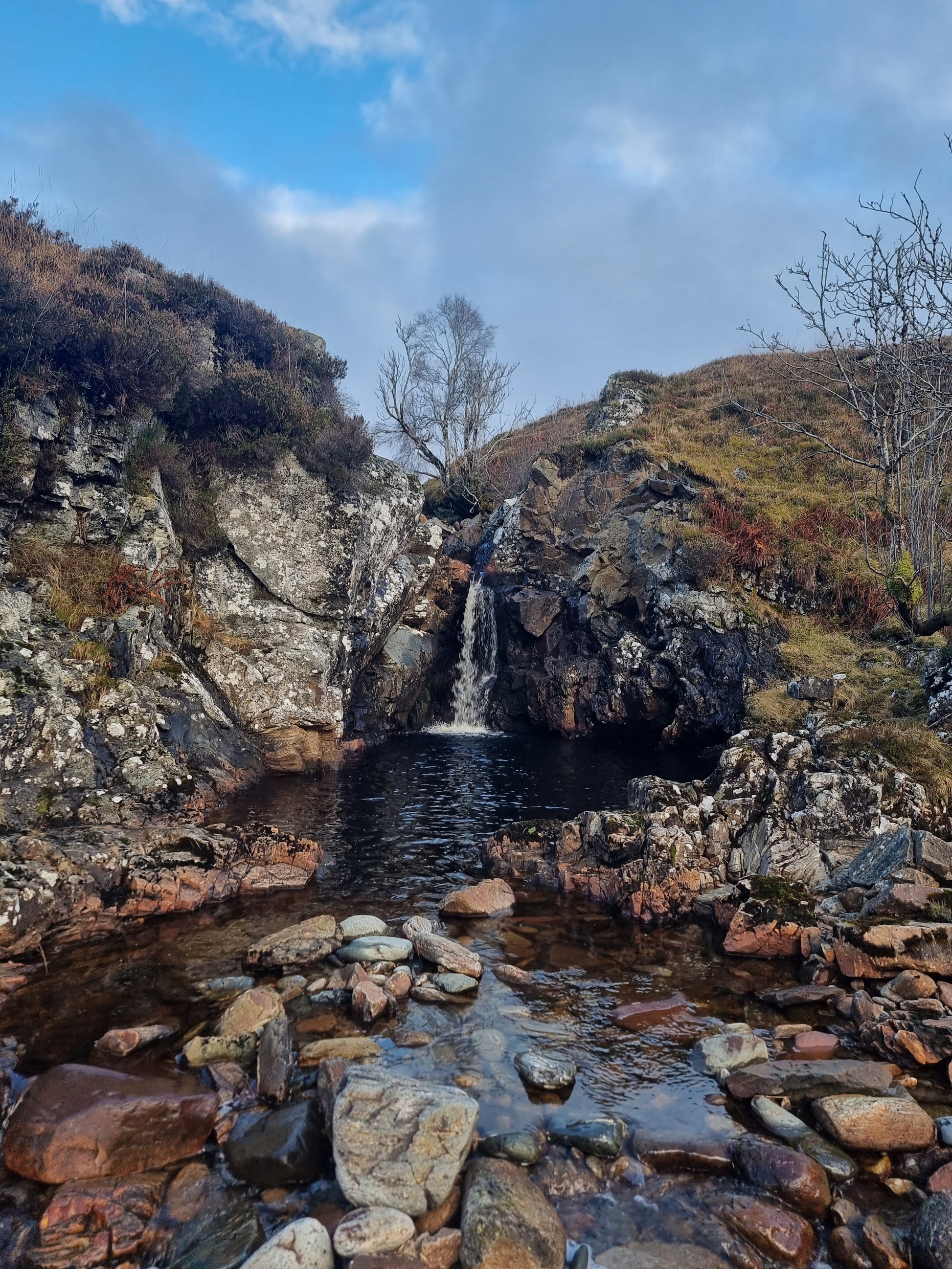 In the shadow of two towering munros, the streams gather to fill the pools of this glen and create some of the most stunning waterfalls and infinity pools that five star hotels dream of recreating.